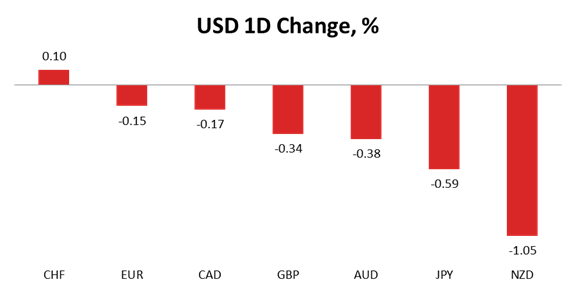 A poor reading of the US Preliminary UoM Consumer Sentiment caused the US Dollar to weaken against most major currencies. The largest decline of 1.05% was registered against the New Zealand Dollar, also triggered by a strong reading of the NZ CPI. The Buck also dropped 0.59% against the Yen, amid the return of risk aversion, followed by a 0.38% versus the Aussie and 0.34% against the Sterling. Lesser slumps of 0.17% and 0.15% were detected against the Loonie and the Euro, respectively. The only rally of 0.10% was seen against the Swiss Franc.