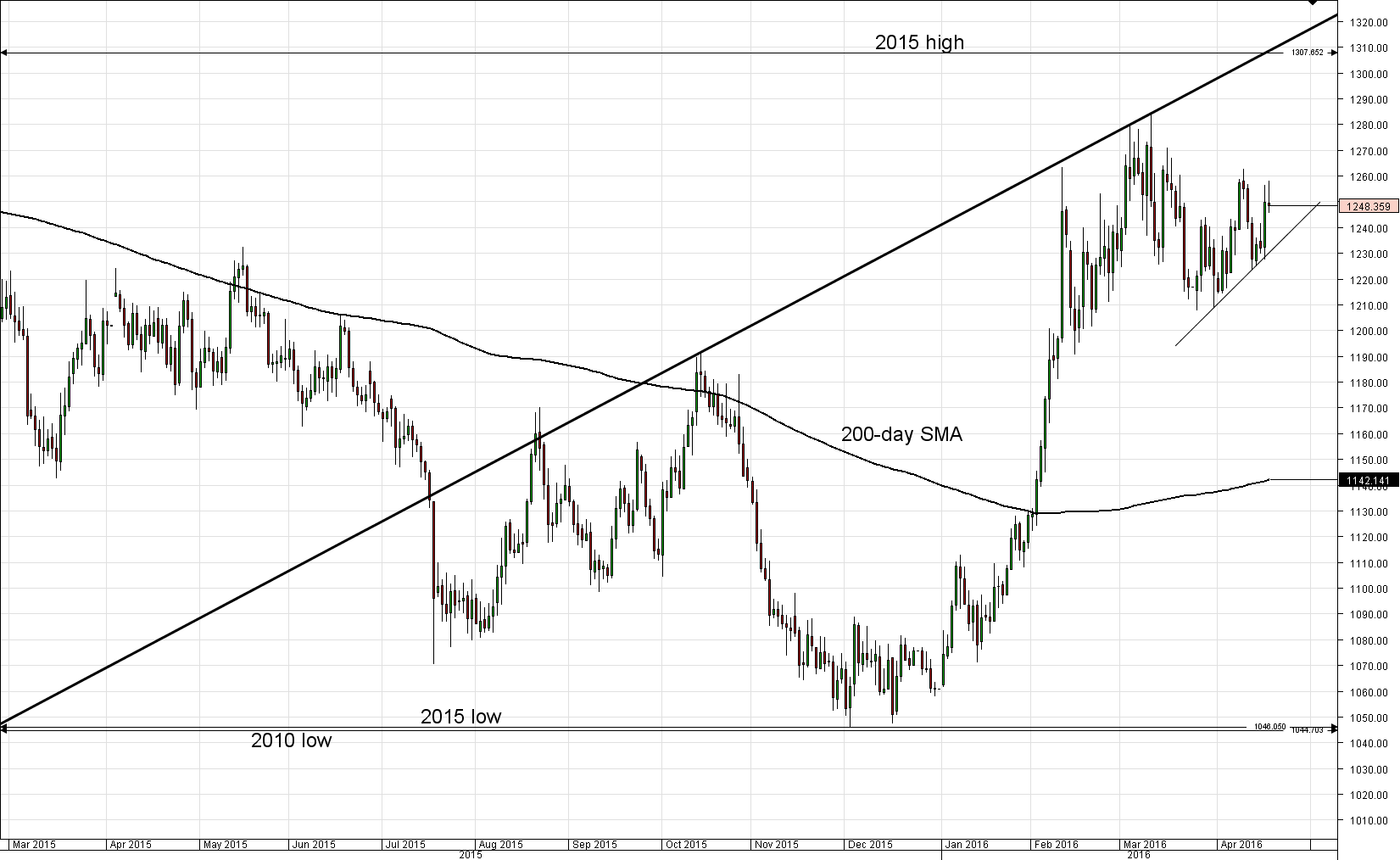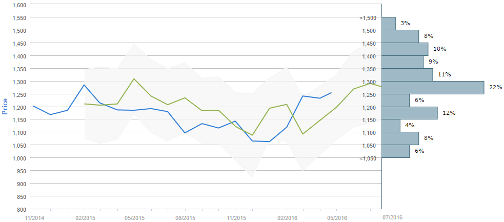 Traders who were asked regarding their longer-term views on gold between March 20 and April 20 expect, on average, to see the metal around 1,275 by the end of July. Generally, 63% (-2%) of participants believe the price will be above 1,250 in ninety days. Alongside, 22% of those surveyed reckon the price will trade in the range between 1,100 and 1,250 over the next three months.