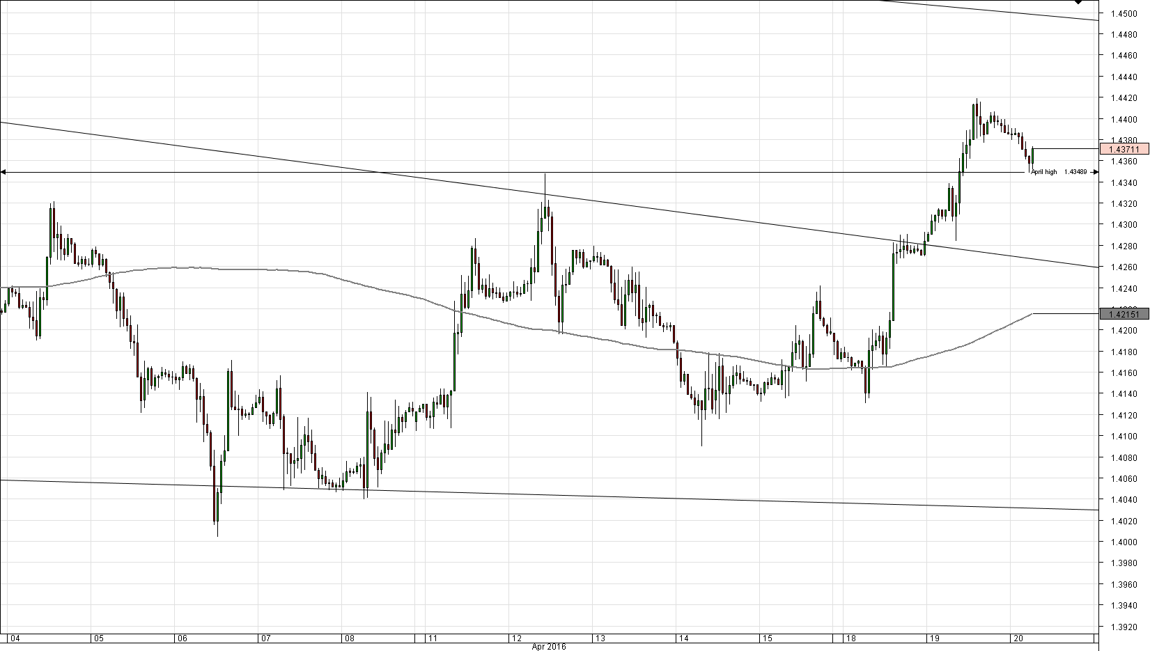 The GBP/USD pair breached through the resistance trend-line yesterday and continued climbing higher, even reaching a fresh April high of 1.4420. However, there was no sufficient impetus to keep the pair elevated, thus, a correction today is possible. On the other hand, the Sterling has the potential to reach the second down-trend at 1.45 if the bullish momentum prevails.