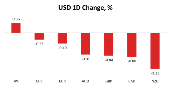 The overall situation barely changed over the day, as the US Dollar weakened against most major peers on Tuesday. The largest decline was seen against the Kiwi, namely 1.33%, amid a strong reading of the GDT Price Index yesterday. Other notable losses were seen against Loonie, the Sterling and the Aussie, with the US Dollar falling 0.88%, 0.84% and 0.81% against them, respectively. The USD/CHF experienced the smallest fall (0.25%), while the only rally of 0.36% was registered versus the Japanese Yen, triggered by the return of risk-on sentiment.