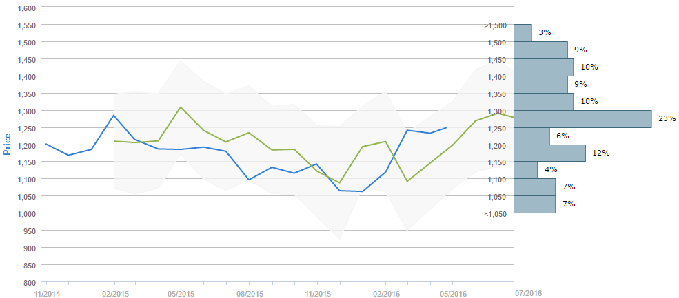 Traders who were asked regarding their longer-term views on gold between March 21 and April 21 expect, on average, to see the metal around 1,275 by the end of July. Generally, 64% (+1%) of participants believe the price will be above 1,250 in ninety days. Alongside, 22% of those surveyed reckon the price will trade in the range between 1,100 and 1,250 over the next three months.