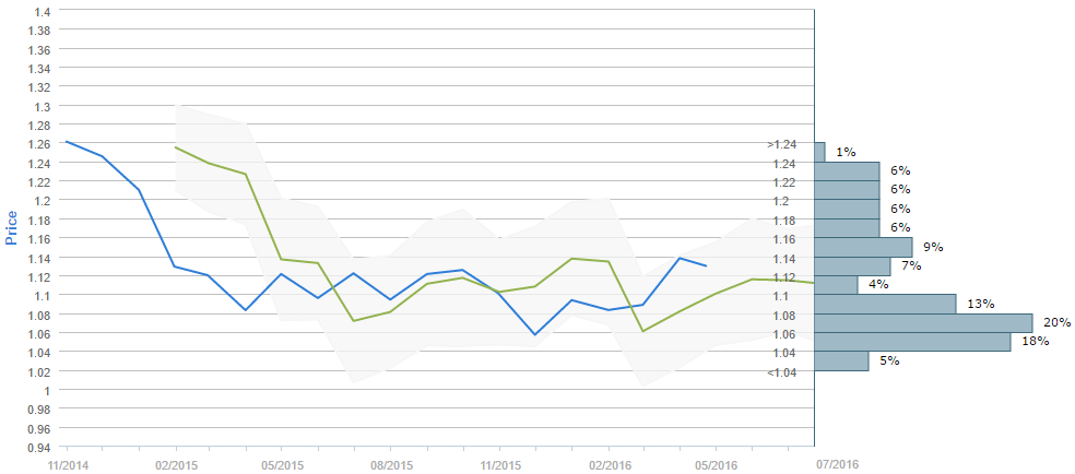 Average forecast says EUR/USD will trade at 1.1160 by July