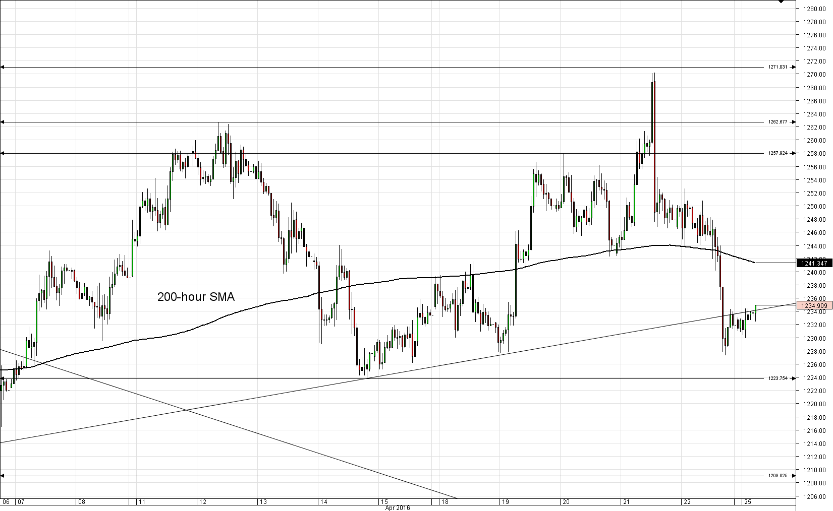 Not only the yellow metal plummeted under the 200-hour SMA, currently at 1,241.33, but it also failed to sustain a drop at the April uptrend that was placed around 1,233. The price is at risk of declining towards the April 14 low at 1,223.75, followed by the current April low at 1,209.02. Both bearish and bullish cases are now being complicated by the fact that the daily technical indicators are broadly neutral.