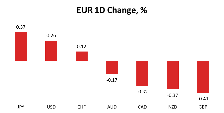 All data but US Services PMI was largely disappointing on Tuesday, taking into consideration major regions worldwide. Europe has not been the largest data generator, with only some speeches of ECB officials included in the economic calendar. As for other countries, the US statistics on orders for durable goods showed they increased noticeably less than expected in March or even declined on the core basis. It indicates that conditions in US manufacturing remain difficult amid strong value of the Buck and weakness overseas. The Euro rebounded against the US Dollar by 0.26%, adding value for a second straight day. EUR/JPY, however, was the best performing currency with a jump of 0.37%, as the Yen attempted to correct lower in the run up to tomorrow's meeting of the Bank of Japan. Due to a rise in oil prices, all commodity-dependent components were able to add some moderate value against the Euro. EUR/NZD led the losses among them to slump by 0.37%. EUR/GBP was down by 0.41%, with the Sterling sweetening amid broadly weak US statistics and more optimistic expectations for the EU referendum due on June 23.