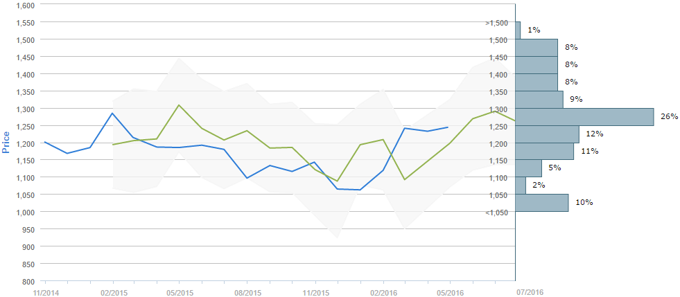 By the end of Tuesday the volume of trading has risen to a three-day peak, which supported the bulls in attacking the nearest resistance at 1,241/43. By creating the long lower shadow, gold closed near the upper bound of the mentioned supply where the weekly pivot is resting at the moment. Additionally backed by the 55-day SMA at 1,236.91 and March-April uptrend at 1,235, the bullion has accumulated a well-positioned upside potential. With strong enough momentum the base scenario would allow for an advance up to the next resistance zone created by the weekly R1, Bollinger band and February peak at 1,258/63.Daily chart