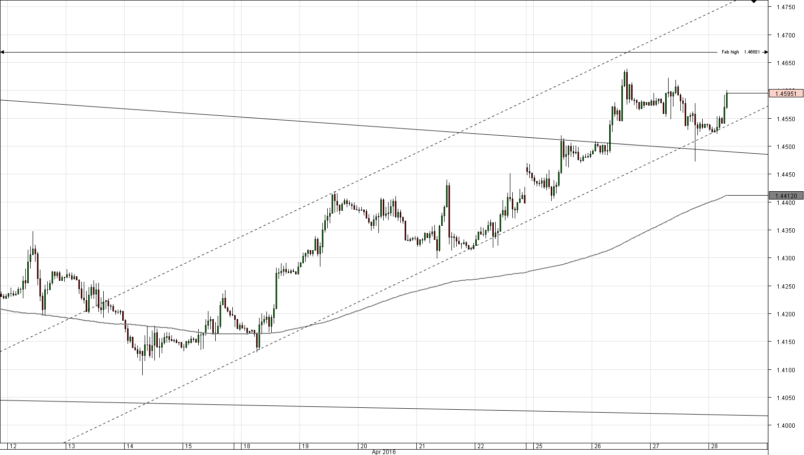 The GBP/USD currency pair underwent a small correction on Wednesday, being weakened by the FOMC statement. Nonetheless, the Cable remained above the immediate support area, namely the weekly R1, which keeps the pair elevated even today. The Sterling has the potential to erase yesterday's losses and climb over the 1.46 major level, with the nearest resistance being the Bollinger band, the monthly R1 and the weekly R2 around 1.4620. The medium-term trend has been bullish for almost four weeks now, with the Pound expected to continue edging higher until the resistance line around 1.49 is reached.