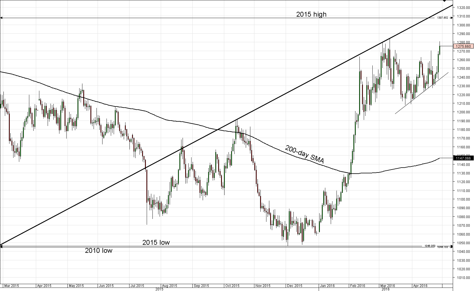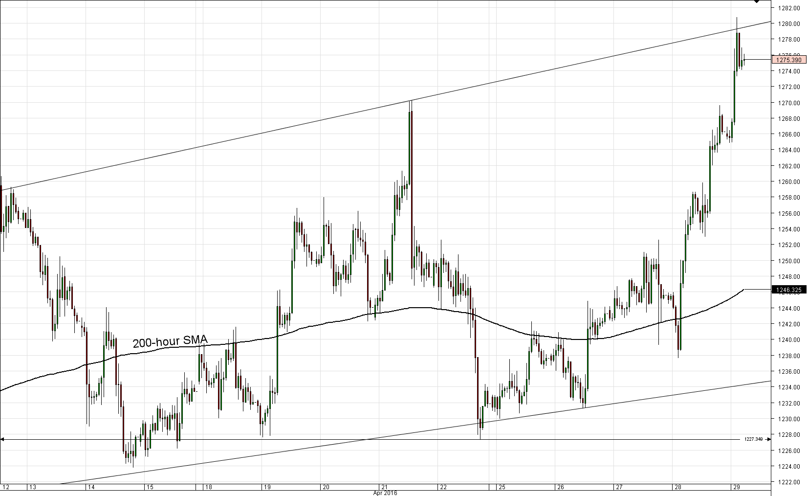 Gold to set eye on March high at 1,284.53
