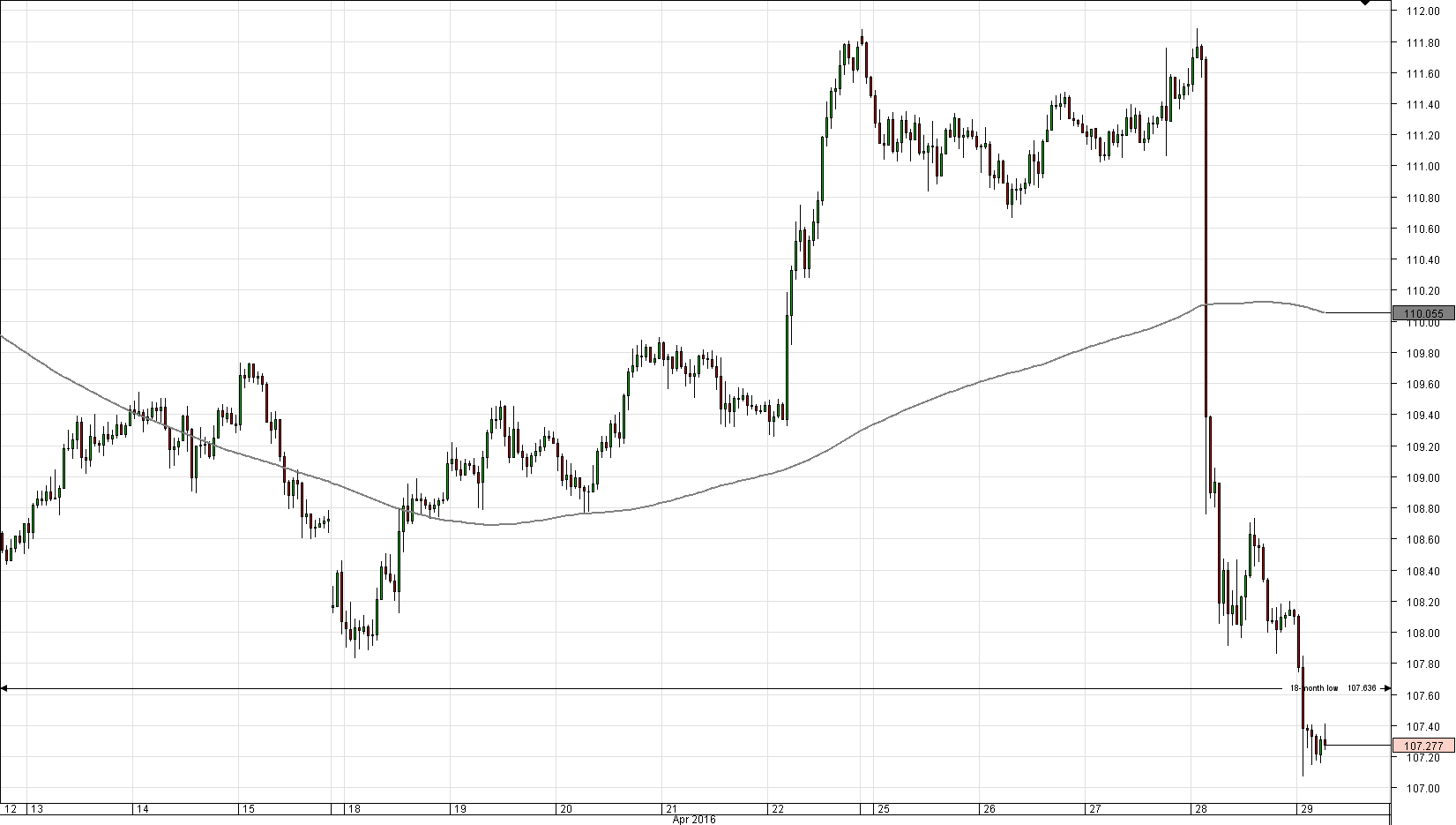 The American Dollar suffered a heavy loss on Thursday, triggered both by the BoJ's decision and a poor reading of the US GDP. Even though the USD/JPY currency pair managed to close trade above the 108.00 major level, the 18-month low is still under the risk of being violated. Unless demand at this low is insufficient to trigger a rebound, the next target will be the support cluster around 106.65, represented by the Bollinger band, the monthly S3 and the weekly S2. Meanwhile, technical indicators are unable to confirm the bearish scenario completely, but no impetus today is expected to cause the bullish momentum to return after yesterday's slump.Bulls remain in control