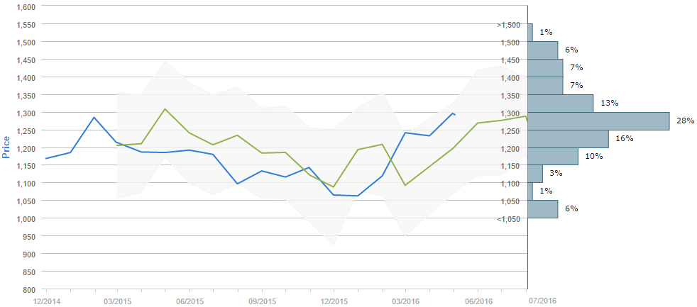 Traders who were asked regarding their longer-term views on gold between April 2 and May 2 expect, on average, to see the metal around 1,275 by the end of July. Generally, 62% of participants believe the price will be above 1,250 in ninety days. Alongside, 29% (-1%) of those surveyed reckon the price will trade in the range between 1,100 and 1,250 over the next three months.