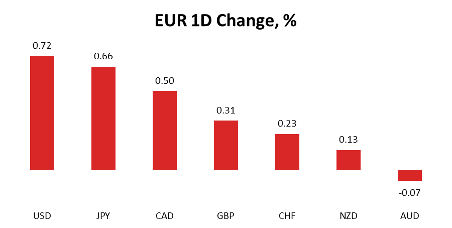 The Euro remained on the topside against all major currencies but the Australian Dollar (-0.07%), although a considerable surge with respect to this South Pacific currency is expected on Tuesday amid a decision of the Reserve Bank of Australia to cut interest rates by 25 basis points. The RBA is attempting to combat much dampened inflation. EUR/USD climbed by 0.72% and EUR/JPY increased by 0.66%. These two components were daily leaders on the first trading day of May. American data has disappointed once again, while the Yen took a setback after recent value appreciation. Other currency pairs were up in the range of 0.13-0.50%, while awaiting more fundamentals later in the week.