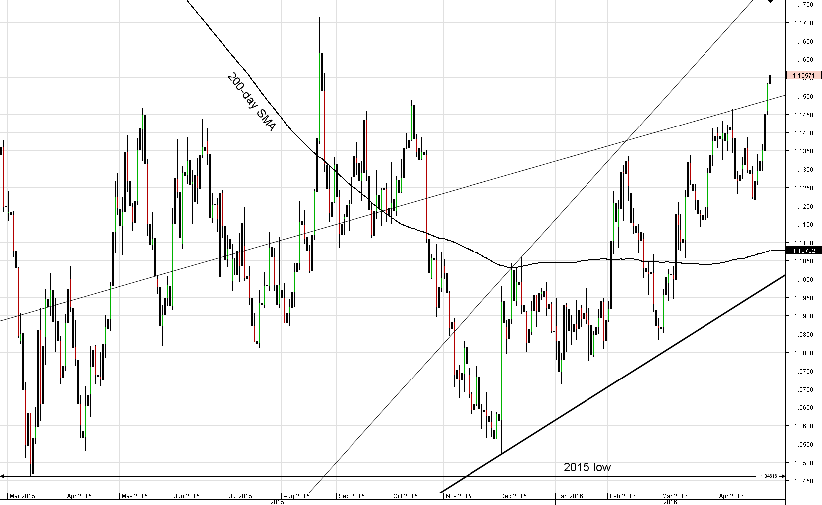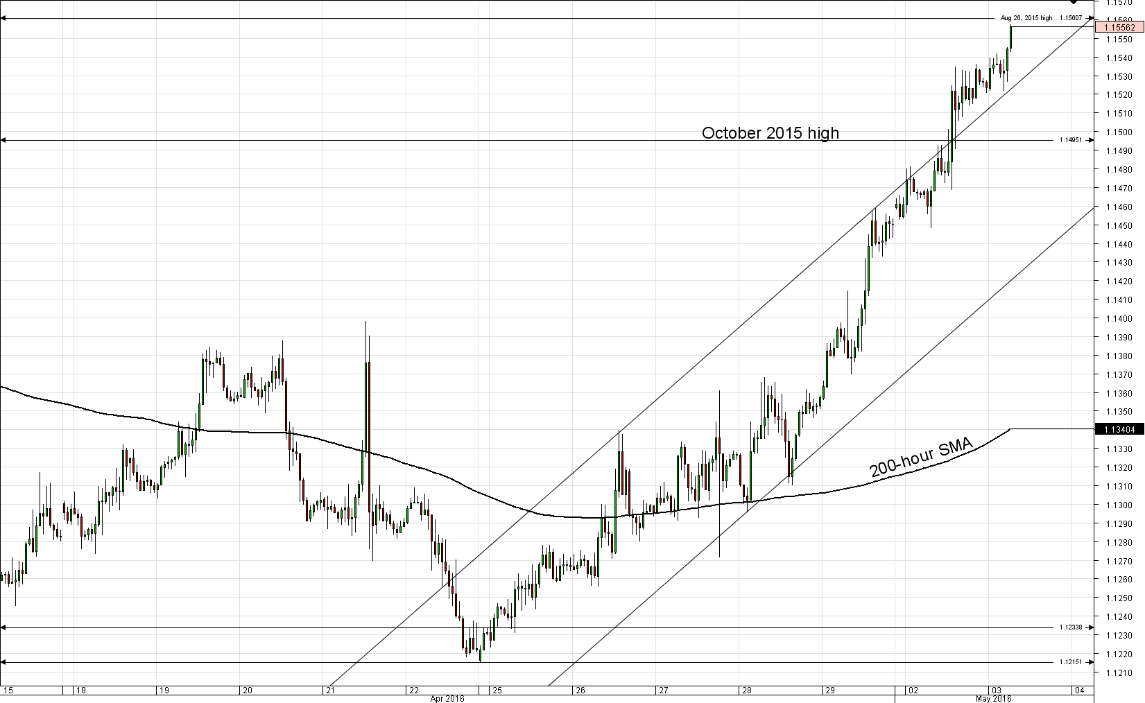 Not only EUR/USD pair is trading in a distinct upward trend for multiple days in a row, this FX cross is managing to violate upper boundaries of bullish channels. With the October 2015 high (1.1495) being left behind, now the focus is on the previous year's August 26 high at 1.1560. By tackling this resistance, the next historical maximum in line is expected to be the 1.1714 level (August 2015 high).