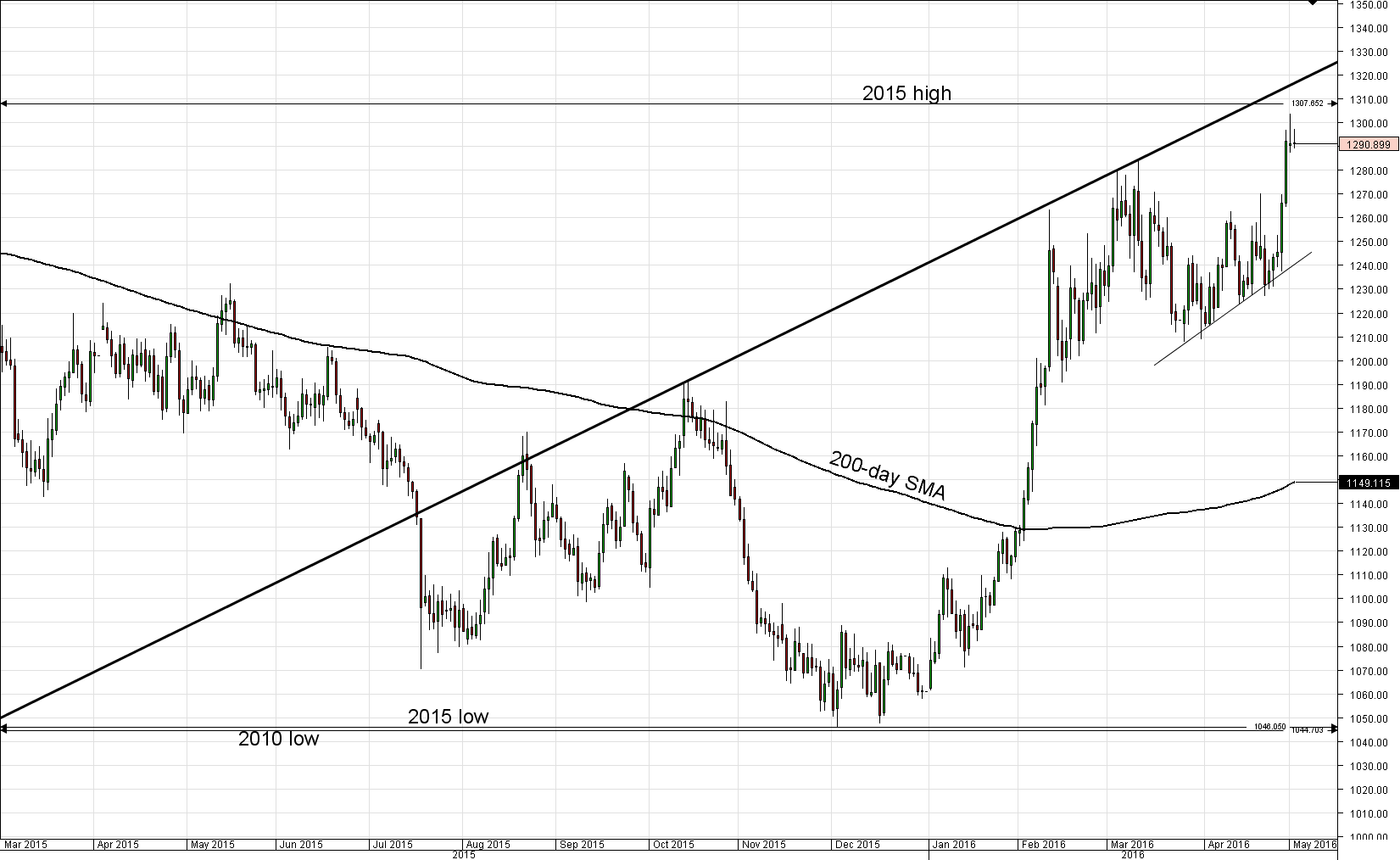 - Long traders keep setting eye on 2015 high at 1,307.06 where heavier bearish impetus is expected