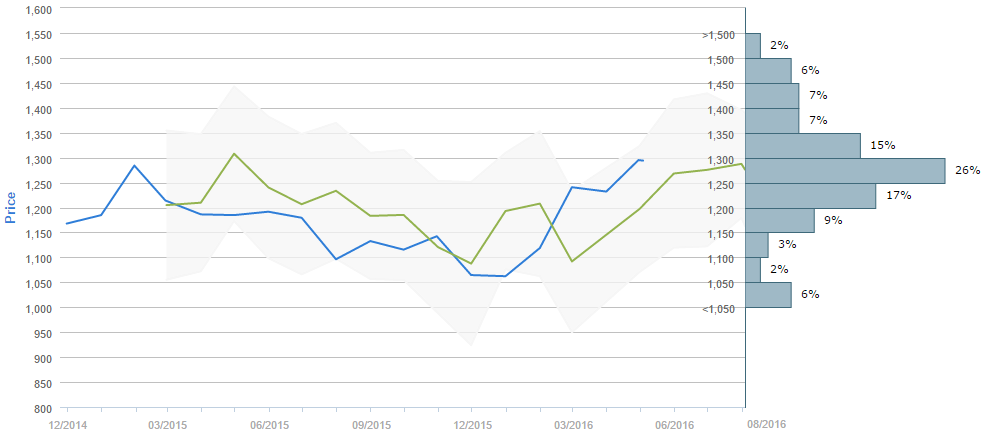 The 1H chart indicates that there is only one short-term resistance to watch, namely the 2015 high at 1,307.06. Likelihood of a continuous rally remains uplifted, given that the yellow metal keeps hovering above the April uptrend with the market price of 1,293.05 at the moment of writing.