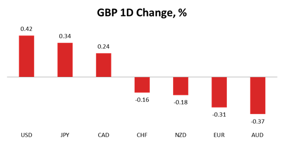 The British currency experienced mixed performance on Monday, having appreciated against some major peers, but declined against the others. The Sterling gained the most against the US Dollar, amid a poor reading of the US Manufacturing PMI, followed by a 0.34% rally versus the Yen and 0.24% against the Loonie. Meanwhile, losses of 0.37% and 0.31% were registered against the Aussie and the Euro, respectively, while the Pound edged 0.18% lower against the Kiwi and 0.16% versus the Swiss Franc over the past 24 hours.