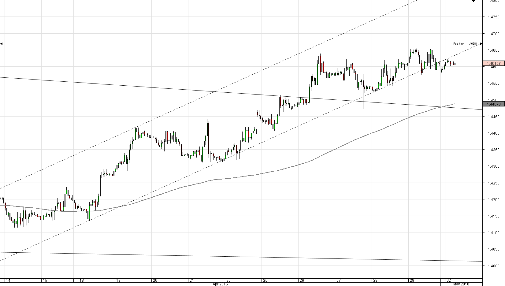 On the hourly chart the GBP/USD currency pair was seen returning within the borders of the ascending channel pattern, also climbing over the Feb high of 1.4668. More bullish momentum is to reconfirm the lower border, but the channel remains ‘incomplete', as there was no extra confirmation of the upper border so far.