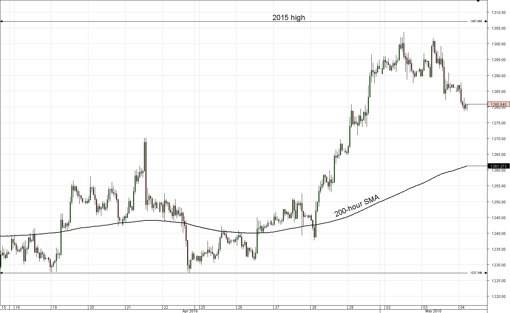 Despite the first daily decrease of gold prices in seven working days, we are going to maintain a positive view on futures, as long as they are fluctuating above the 200-hour SMA. Currently the moving average is located at 1,261.26 against the spot's 1,279.67 at the moment of writing, but the SMA holds a clear topside trend. When the two encounter each other, the likelihood of more bullish momentum will grow.