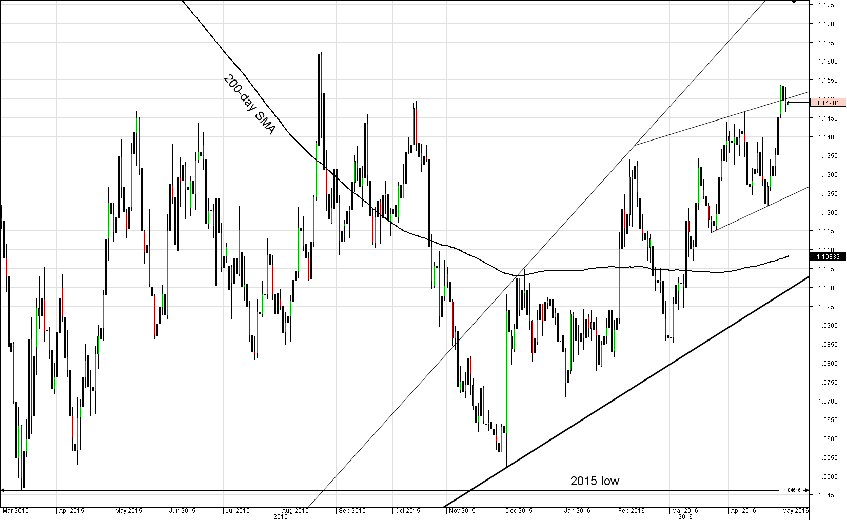 Both Daytrader21 and Jignesh are bearish with respect to the common European currency. Daytrader21 suggests that "the ECB's commitment to its aggressive easing stance, coupled with a resumption in the US Dollar bullish trend, should keep EUR/USD under pressure in coming week. I am looking for a retest of the 1.1080 support level". Alongside, Jignesh is suggesting the following: "Last week's price action gave us a clue for a bullish cycle in the USD. [...] Though the pair remains in a bullish cycle for 2016, the Dollar Index is showing USD strength, which translates into a correction of the pair that can last at least over the next week or two."