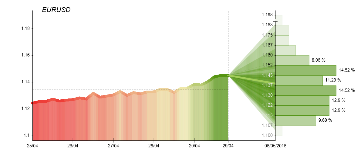Dukascopy Community members are divided equally in their expectations, as a consensus forecast stands at 1.1370. Still, the level is more than 70 pips above the last week's average price, meaning the pair continues trading in a strong uptrend.
