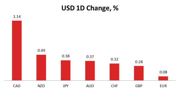 The Greenback managed to post gains across the board, despite the ADP Non-Farm Employment Change data disappointing dramatically. The upbeat US Services PMI caused the US Dollar to appreciate against most major peers, with the USD/CAD adding 1.14%, also boosted by a poor reading of the Canadian Trade Balance. Meanwhile, the Buck added 0.49% against the Kiwi, followed by a 0.38% gain against the Yen, 0.37% versus the Aussie, 0.32% against the Swissie and 0.28% against the Sterling. The smallest rally was registered against the Euro, only 0.08%.