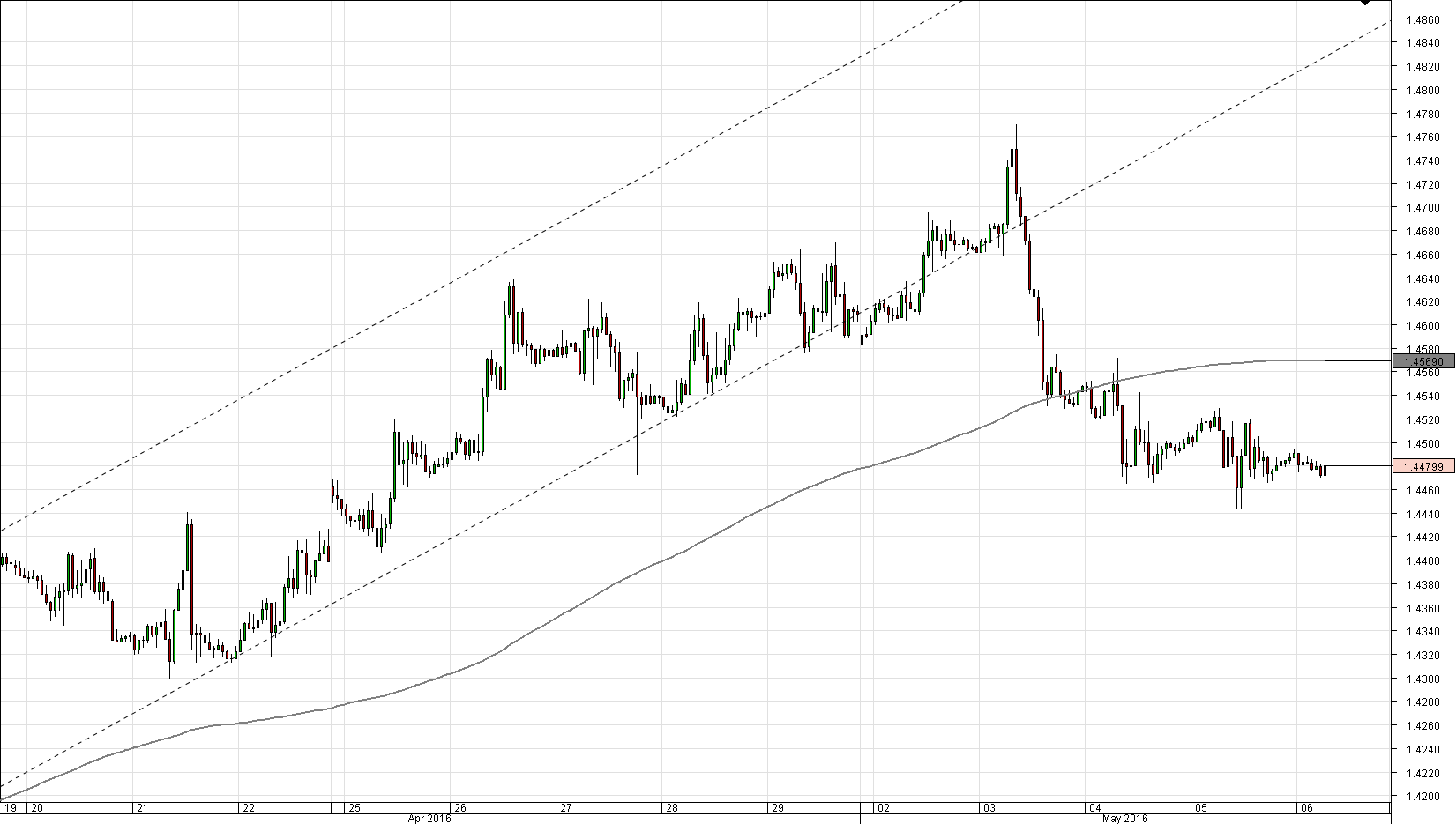- Support is around 1.4440, represented by the weekly S1, the monthly PP and the 20-day SMA