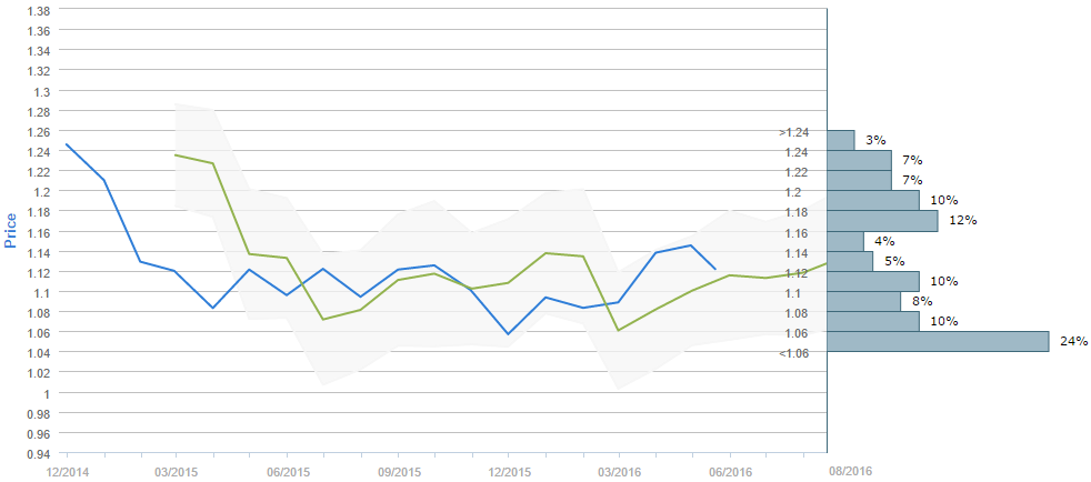 Average forecast says EUR/USD will trade at 1.13 by August