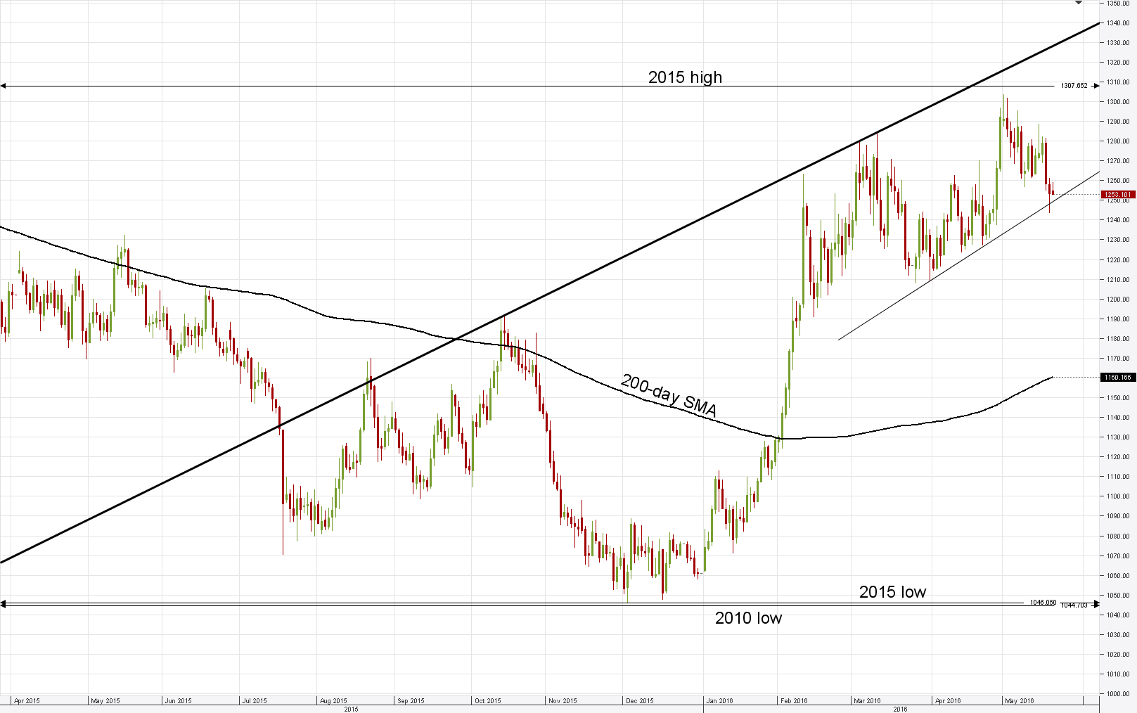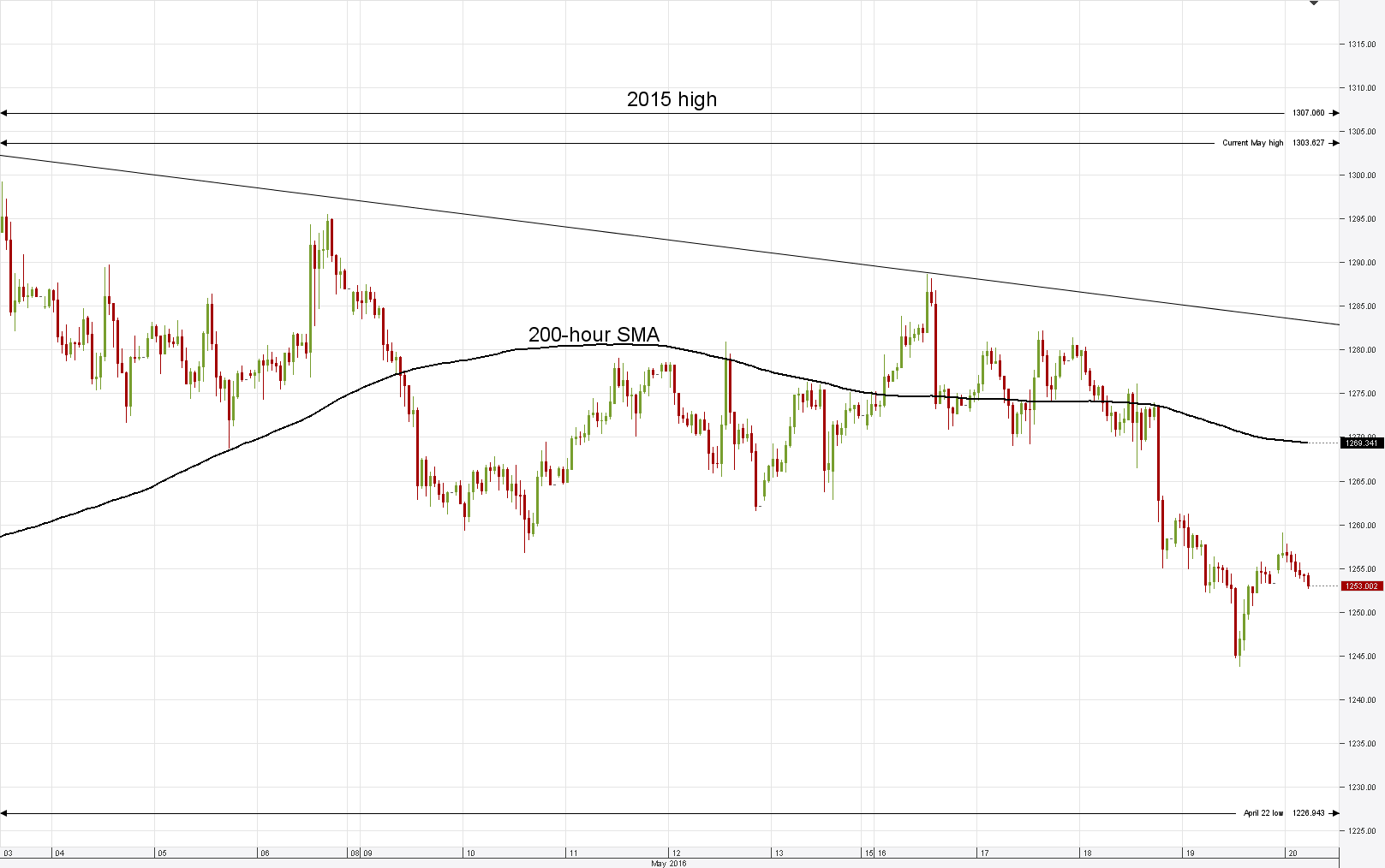 Gold resisted by 55-day SMA from below