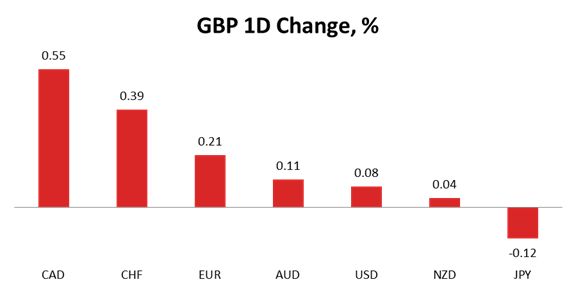 A positive reading of the UK Retail Sales data yesterday caused the Sterling to outperform most major peers. The largest gain was recorder against the Canadian Dollar, namely 0.55%, while against the other commodity currencies the Pound added only 0.11% (versus the Aussie) and 0.04% (versus the Kiwi). At the same time, another significant rally was registered against the Swiss Franc (0.39%), followed by a 0.21% gain against the Euro. The Cable remained relatively unchanged, having surged only 0.08%, but the British currency also sustained a 0.12% loss versus the Japanese Yen.