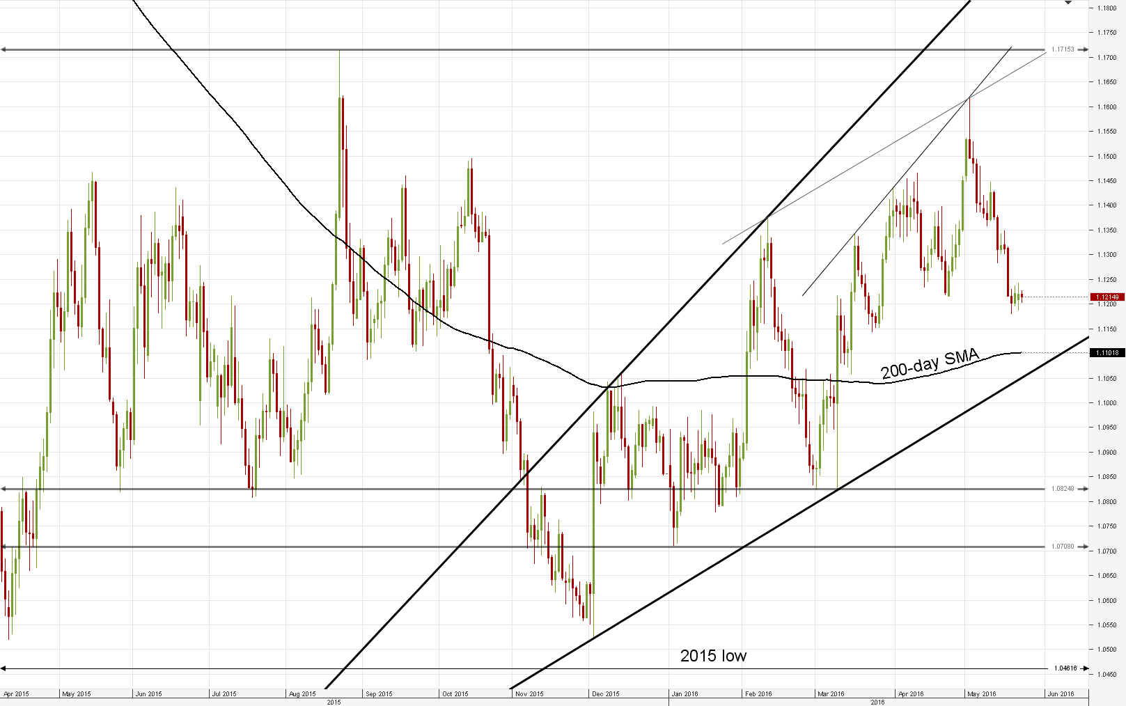 An important economic indicator of the Euro zone's economic health dropped in May to its lowest level in 16 months despite the efforts of the ECB to boost growth and business activity in the region. The flash Eurozone PMI Composite Output Index indicated that business activity in the 19-country region slid to 52.9 in May from 53.0 in April, failing to meet analysts' expectations for an estimated 53.2. Moreover, a separate research of the bloc's factory arena showed the flash Manufacturing PMI was at 51.5 in May, compared to 51.7 seen in the previous month, while economic forecast was on 51.9. Meanwhile, conditions in the Euro zone services sector remained unchanged as the gauge came in at 53.1, the same as in April, while analysts expected a slight improvement to 53.3 in May. A level below 50.0 signals a drop from the previous month, while a level above signals an increase. Thus, the latest PMIs suggest that economic growth has slowed in the Euro area in the second quarter and that business activity remained subdued. Moreover, earlier in the month, the European Commission lowered its forecast for economic growth across the Euro zone to a 1.8% expansion of GDP for 2016 and 2017, which is ten basis points down from the previous forecast. However, it is considered that investment is likely to pick up next year, rising to 3.8% of GDP, yet unemployment will remain high at 10.3% this year and 9.9% in 2017.