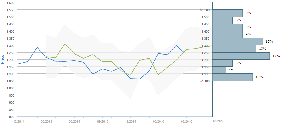 Traders who were asked regarding their longer-term views on gold between April 24 and May 24 expect, on average, to see the metal around 1,300 by the end of August. Generally, 61% (+1%) of participants believe the price will be generally above 1,250 in ninety days. Alongside, 27% (+1%) of those surveyed reckon the price will trade in the range between 1,100 and 1,250 over the next three months.