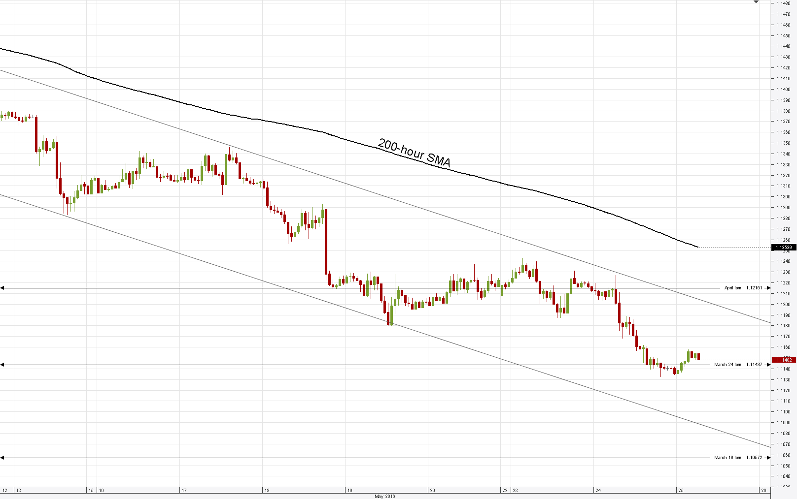 60% of the Dukascopy Community members are expecting a decline in the value of the Euro against the Greenback by the end of this working week. The median estimate for May 27 stands at the level of 1.124. Among traders, megajorko suggests that "EUR/USD has broken a lot of support lines recently but the main still stays - 1.116-1.118. This was the start of the rise when Janet Yellen announced no rate hike and now the new information about the hawkish fed turns the pair more bearish. Without any bullish momentum, I think, my target from the year start of 1.1111 will be end of weekly/monthly target".