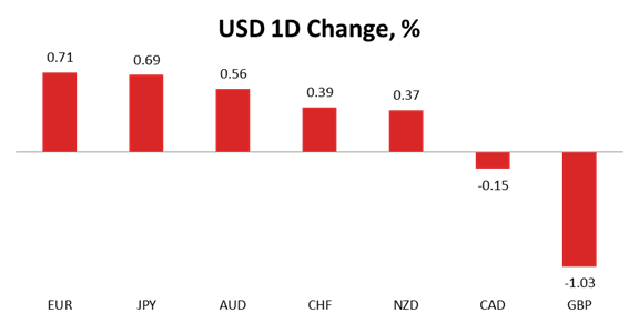The Buck managed to outperform most of major currencies on Tuesday, with exception of the Loonie and the Sterling. Rather mild gains of 0.71% and 0.69% were registered against the Euro and the Japanese Yen, respectively. Greenback also outperformed two out of three commodity currencies, having added 0.56% versus the Aussie and 0.37% versus the Kiwi, while another small rally of 0.39% was detected against the Swiss Franc. On the other hand, the US Dollar slipped 0.15% against the Loonie, while a sharp loss of 1.03% was seen against the British Pound, due to the TSC Report Hearings.