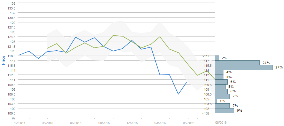 Slightly more than a half expect the exchange rate to rise above 114 yen