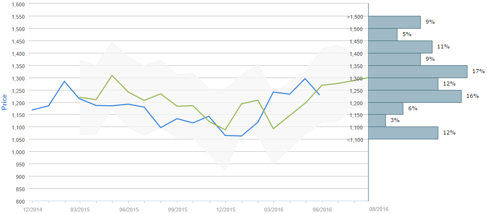 Traders who were asked regarding their longer-term views on gold between April 26 and May 26 expect, on average, to see the metal around 1,300 by the end of August. Generally, 63% (+1%) of participants believe the price will be generally above 1,250 in ninety days. Alongside, 25% of those surveyed reckon the price will trade in the range between 1,100 and 1,250 over the next three months.