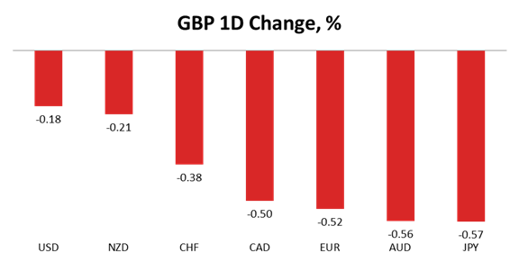 There are 57% of traders being long the Sterling today (previously 54%), while the share of sell orders inched up from 52 to 58%.