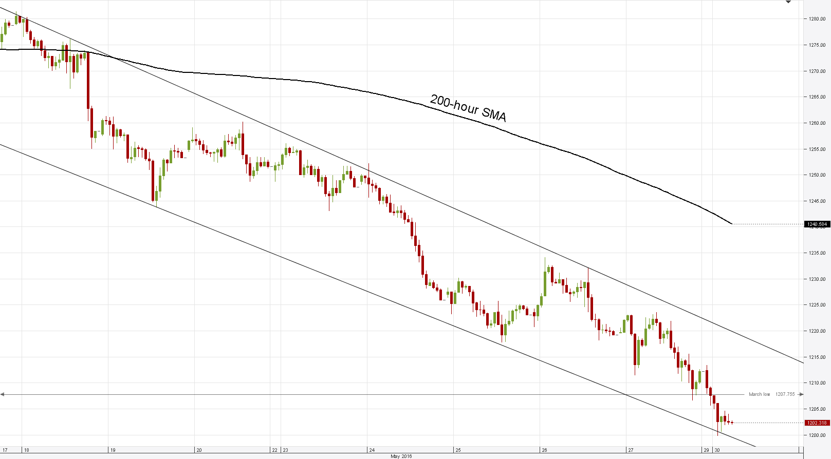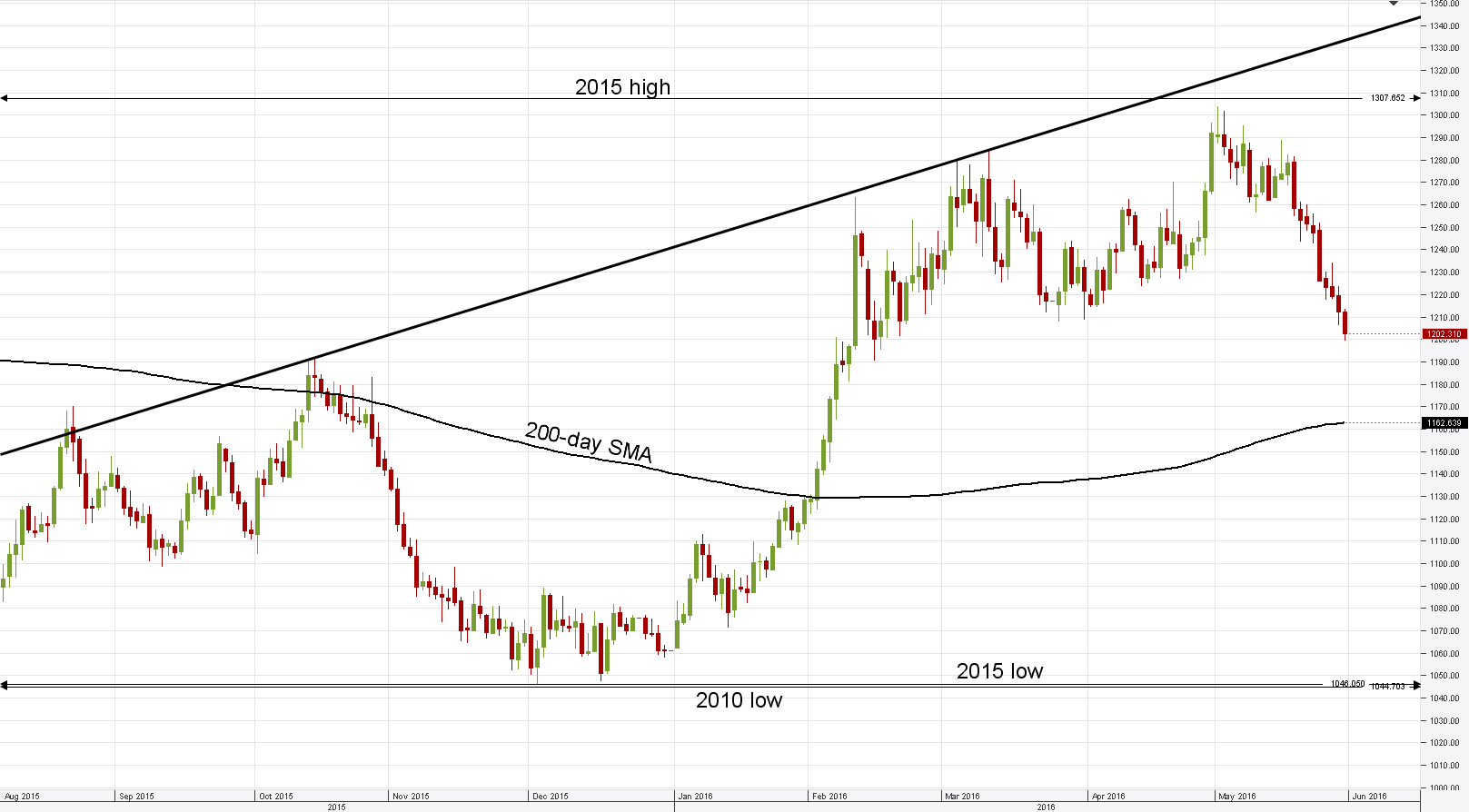 Daily chart: The bullion sees no end to its massive losing streak, as on Monday the metal continues to slide down with the March low at 1,207.87 tested successfully. Current trading levels indicate gold is offered at the cheapest price since February 22 and is 6% down over the last nine trading days, while the 1,200 psychological mark is substantially exposed to bearish pressure. In case XAU/USD closes below the March low today, the base attention will switch to the ultra-important years' 2013-2015 downtrend, currently at 1,186.35.SWFX market sentiment turns neutral