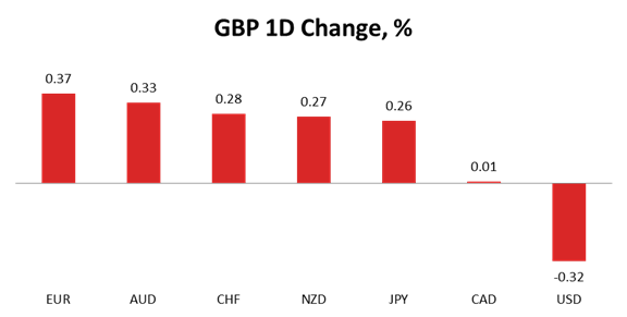 Despite the absence of any events in the economic calendar, the British Pound was among the best performers on Friday. The currency appreciated more than 0.3% against the Euro and Australian Dollar, losing only relative to the US Dollar, which in turn strengthened 0.32% versus the Sterling.
