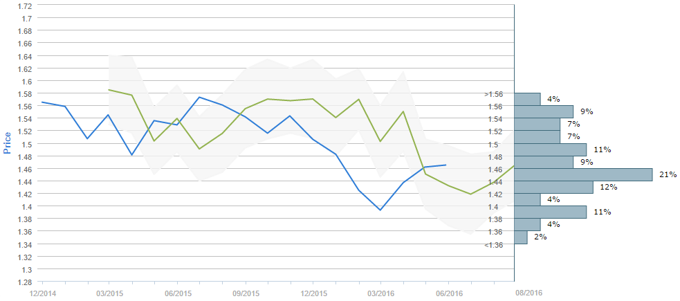Despite Sterling's proximity to a major resistance area between 1.4750 and 1.48 dollars, the market is undecided with respect to the currency's future: 54% of traders are long and 46% are short. The same is with the orders, 49% of which are buy and 51% are sell.