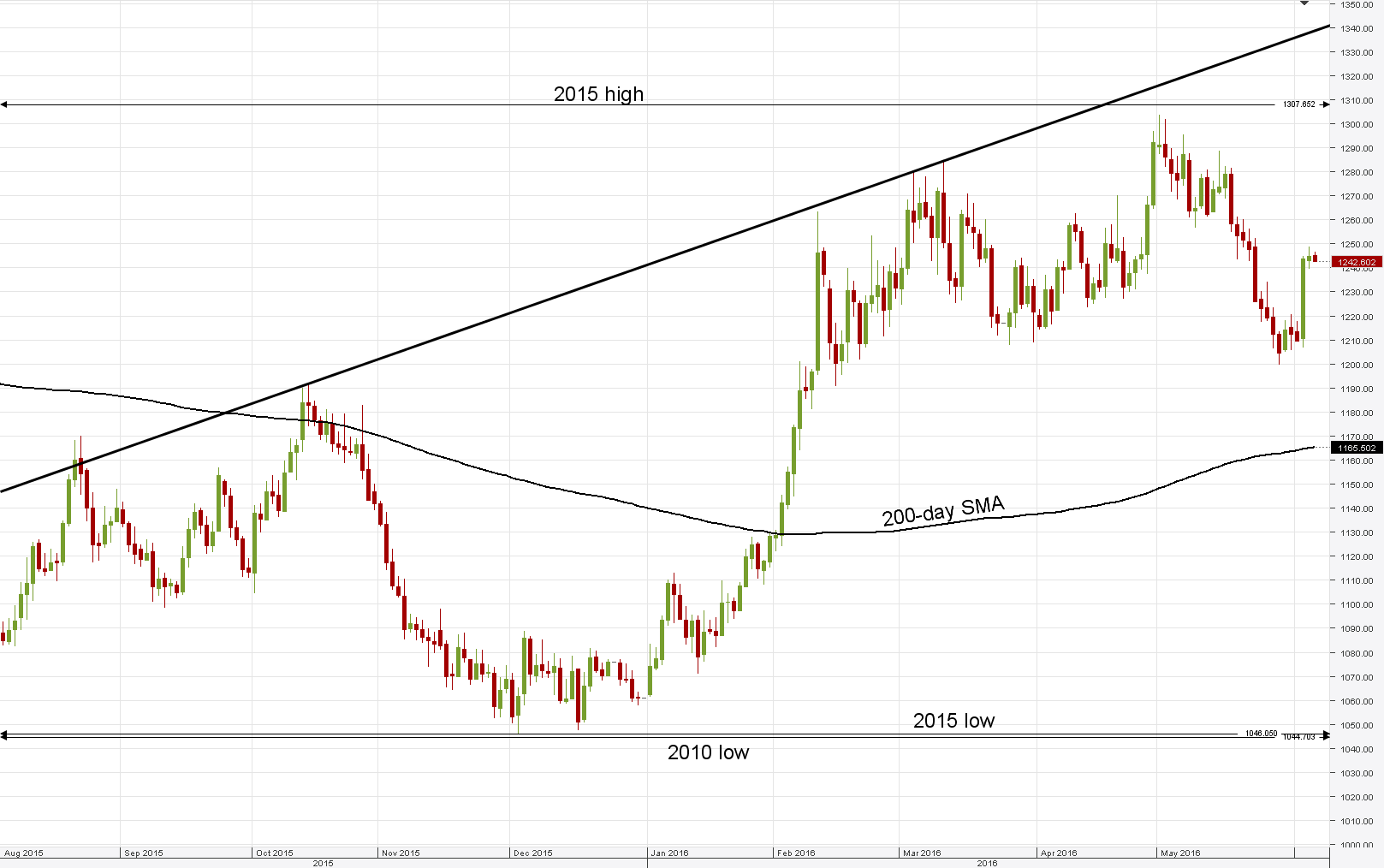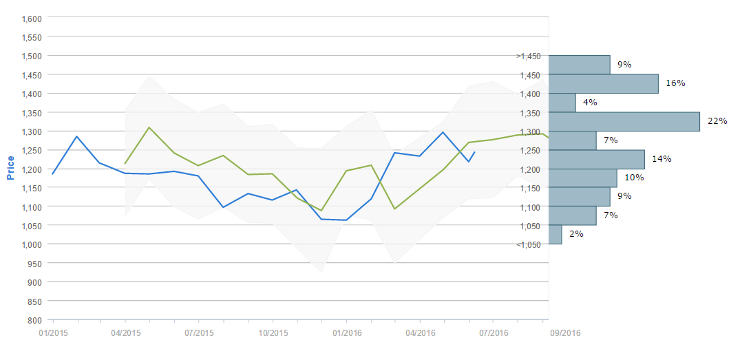 Traders who were asked regarding their longer-term views on gold between May 7 and June 7 expect, on average, to see the metal around 1,275 by the end of August. Generally, 58% (-1%) of participants believe the price will be generally above 1,250 in ninety days. Alongside, 33% (+1%) of those surveyed reckon the price will trade in the range between 1,100 and 1,250 over the next three months.