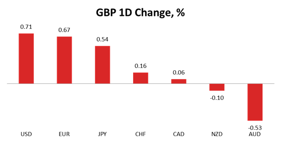 The British currency managed to post rather significant gains on Tuesday, having declined notable only against the Aussie. The RBA's decision to leave its cash rate unchanged at 1.75% provided the Aussie with sufficient strength to outperform the Sterling, with the GBP/AUD edging 0.53% lower. The only other decline was seen against the Kiwi, which accounted for 0.10%, while against the third commodity currency, namely the Loonie, the Pound barely managed to add any value, having surged 0.06%. Relatively significant gains were registered against the Yen (0.54%), the Euro (0.67%) and even versus the US Dollar (0.71%).