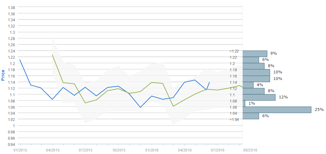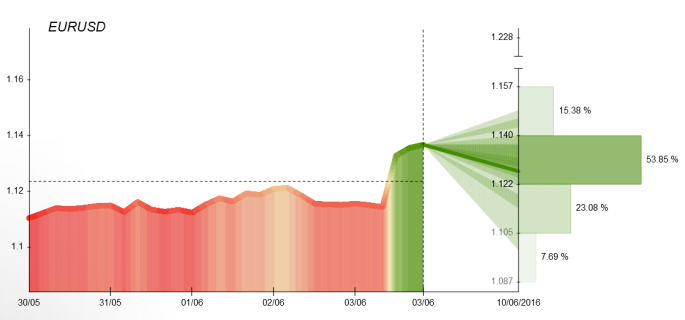 Meanwhile, traders, who were asked regarding their longer-term views on EUR/USD between May 8 and June 8 expect, on average, the currency pair around 1.12 by the end of August. Though 52% (+1%) of participants believe the exchange rate will be generally below 1.12 in ninety days, with 32% alone seeing it below 1.08. Alongside, only 24% (-1%) of those surveyed reckon the price will trade in the range between 1.12 and 1.18 on August 31.Dukascopy Community members are bearish on this week's perspectives of EUR/USD