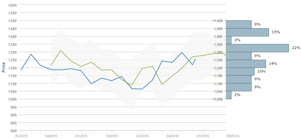 Traders who were asked regarding their longer-term views on gold between May 8 and June 8 expect, on average, to see the metal around 1,275 by the end of August. Generally, 57% (-1%) of participants believe the price will be generally above 1,250 in ninety days. Alongside, 36% (+3%) of those surveyed reckon the price will trade in the range between 1,100 and 1,250 over the next three months.