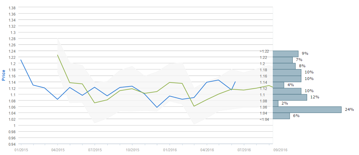 Average forecast says EUR/USD will trade at 1.12 by August