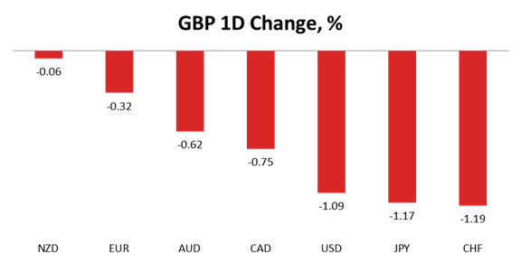 Driven by political factors, mainly by ‘Brexit' polls, the Sterling weakened against most major peers on Tuesday. The largest losses of 1.19%, 1.17% and 1.09% were registered against the Swiss Franc, the safe-haven Yen and the American Dollar, respectively. However, falling oil prices reduced the losses against commodity currencies, with the GBP/CAD edging 0.75% lower and the GBP/AUD inching 0.62% lower. At the same time, the Pound remained relatively unchanged against the New Zealand currency, with the pair sliding down 0.06%.