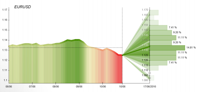 Meanwhile, traders, who were asked regarding their longer-term views on EUR/USD between May 16 and June 16 expect, on average, the currency pair around 1.12 by the end of August. Though 45% (+2%) of participants believe the exchange rate will be generally below 1.12 in ninety days, with 25% (+5%) alone seeing it below 1.08. Alongside, only 28% (+9%) of those surveyed reckon the price will trade in the range between 1.12 and 1.18 on August 31.Dukascopy Community members are bearish on this week's perspectives of EUR/USD