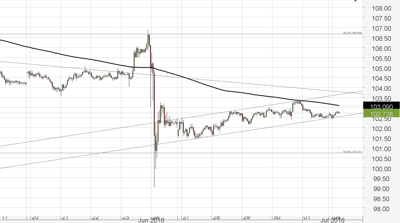 A period of risk-aversion on Friday caused the USD/JPY currency pair to lose more than 60 pips, but without any significant level getting breached. Technical studies retain mixed signals today as well, therefore, the Greenback is expected to be relatively calm during the day. The weekly PP at 102.46 is the closest support, just below the opening price, while the weekly R1 at 103.51 represents immediate resistance. The bullish development is more likely to occur, although more weakness could follow, leading the exchange rate to another retest of the trend-line at 101.53.Daily chart