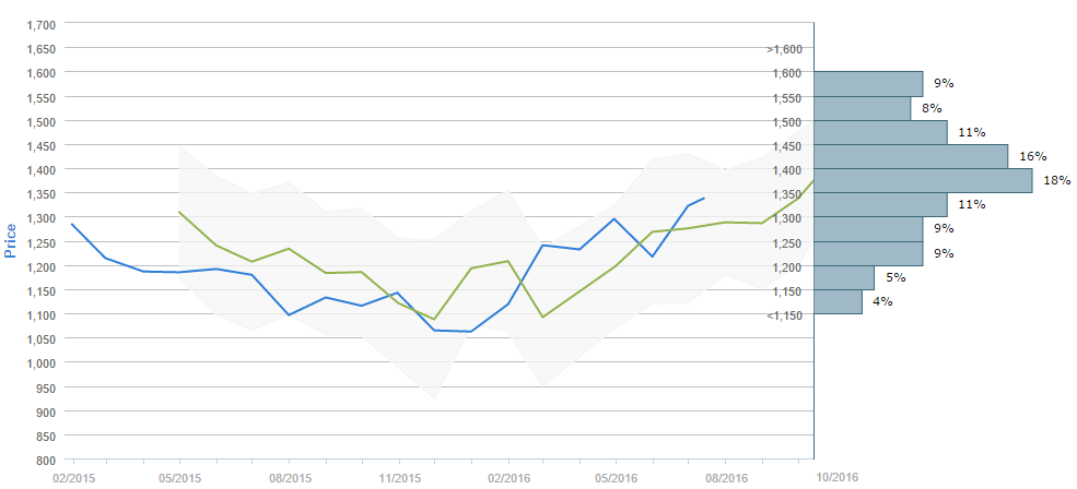 Traders who were asked regarding their longer-term views on gold between June 13 and July 13 expect, on average, to see the metal around 1,375 by the end of September. Generally, 44% of participants believe the price will be generally above 1,400 in ninety days. Alongside, 47% of those surveyed reckon the price will trade in the range between 1,1200 and 1,400 over the next three months