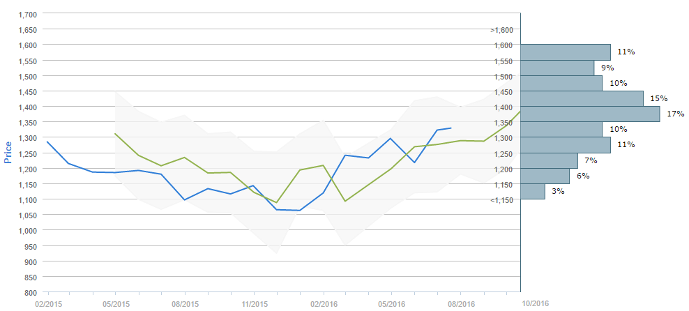 Traders who were asked regarding their longer-term views on gold between June 18 and July 18 expect, on average, to see the metal around 1,375 by the end of September. Generally, 45% of participants believe the price will be generally above 1,400 in ninety days. Alongside, 45% (-3%) of those surveyed reckon the price will trade in the range between 1,200 and 1,400 over the next three months