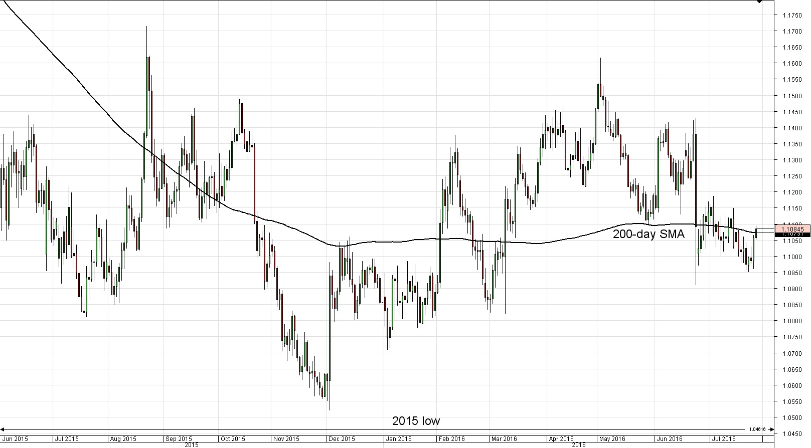 Daily chart: The common European currency scored major gains against the US Dollar, as the currency exchange rate started Wednesday's trading at 1.0987 and ended the trading session at 1.1058. During this surge, the currency pair broke through two resistance levels, as first the weekly pivot point at 1.1005 gave up, and afterwards the first weekly resistance at 1.1055 was broken. However, the weekly R1 is also a part of a larger resistance cluster, which is also made up of the 20-day SMA at 1.1063 and 200-day SMA at 1.1073, and these resistances were holding the pair back on Thursday morning.Daily chart
