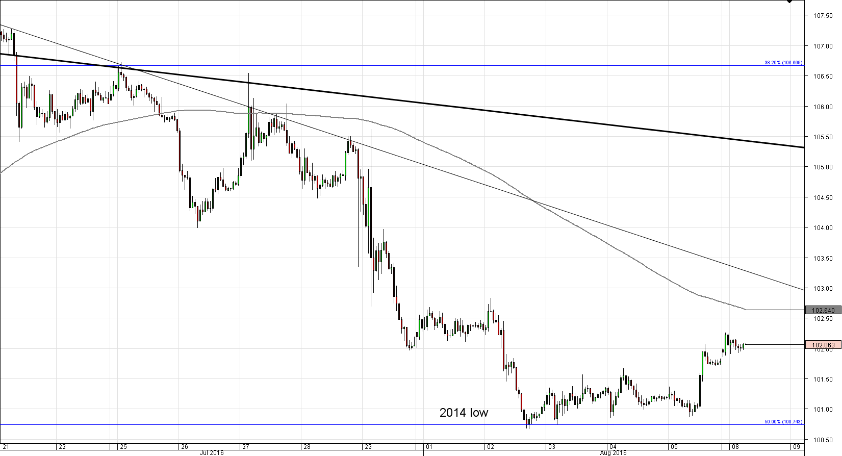 As the key levels are still intact, the medium-term outlook remains mixed, although near-term risks are skewed to the upside. From one side, the currency pair is in the middle of forming a new bearish wave within a nine-month descending channel. A decline is also implied by the daily and monthly technical indicators. From the other side, a major demand zone between 100.70 and 100.00 stands its ground and suggests a rebound. However, as long as a falling resistance trend-line at 105 yen is above the price, prolonged recovery is unlikely.Daily chart