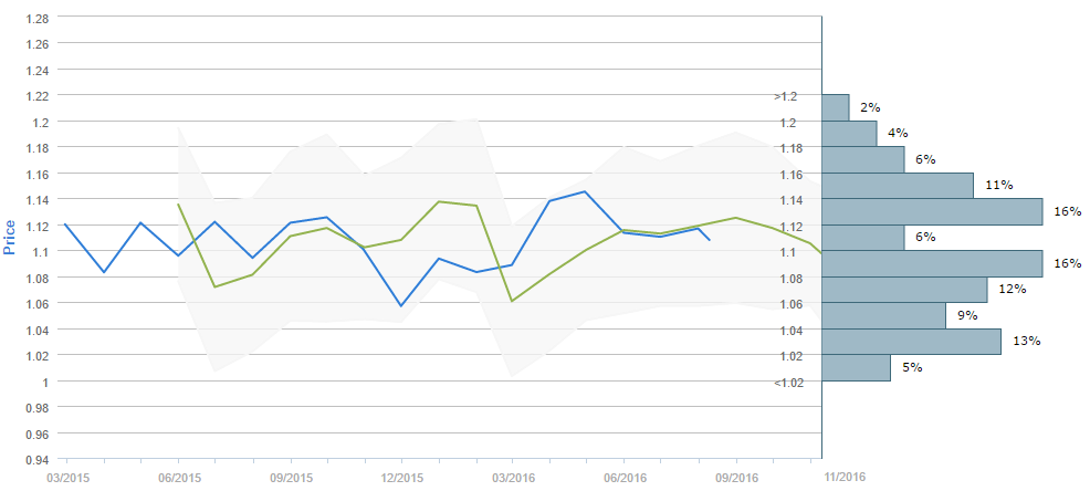 Average forecast says EUR/USD will trade at 1.10 in November